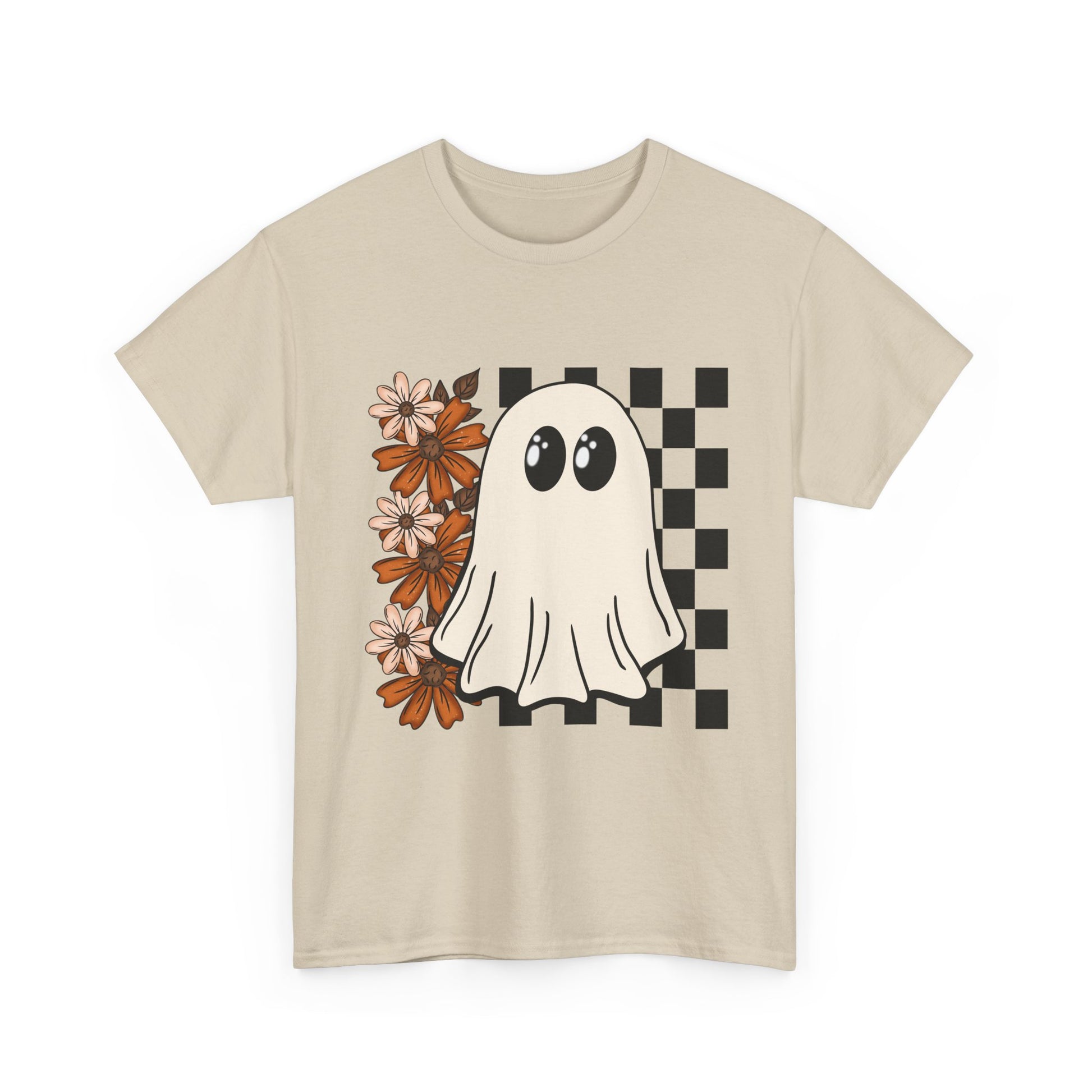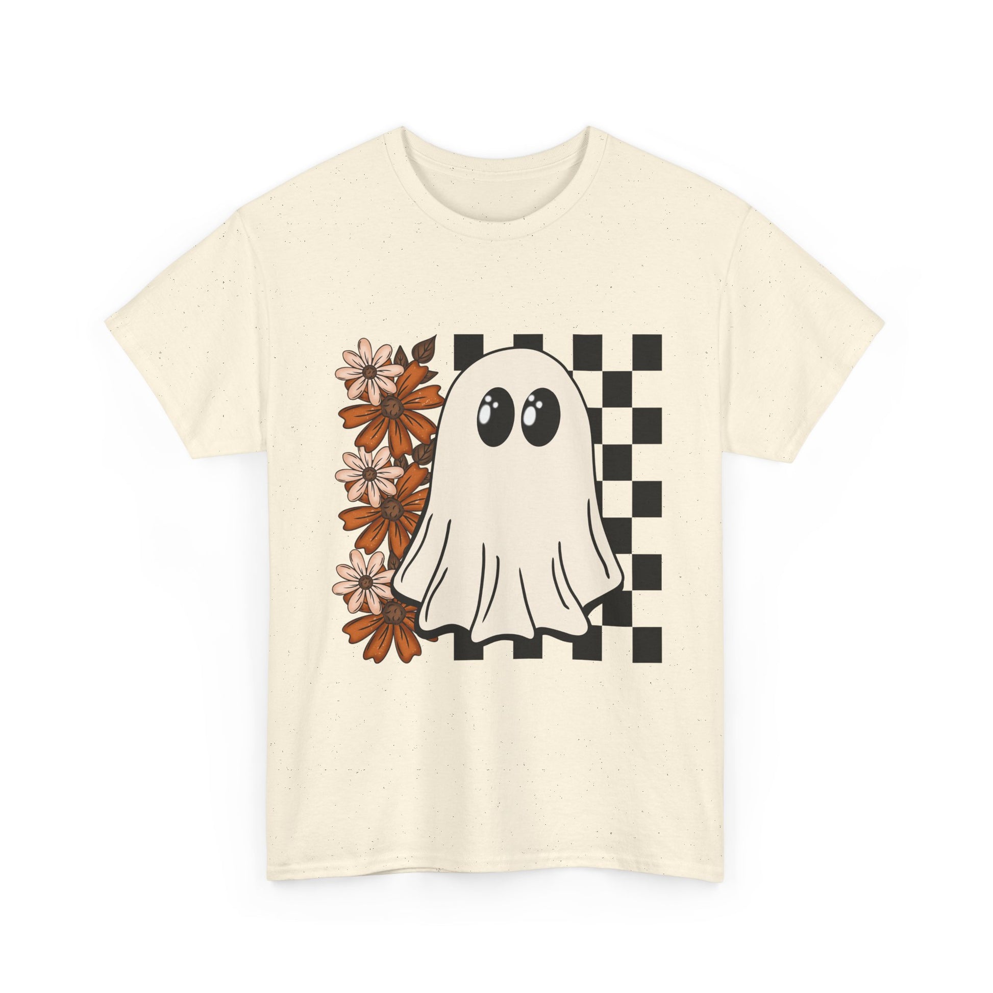 Embrace your playful side with this Unisex Heavy Cotton Tee, perfect for everyday wear. Featuring a charming ghost graphic surrounded by lively flowers, this shirt effortlessly blends comfort and style. Its classic fit and crew neckline ensure an inviting feel, making it suitable for casual outings or relaxed gatherings with friends. Ideal for those who love quirky fashion, this tee is a must-have for Halloween celebrations, spooky season, or just for adding a touch of whimsy to your wardrobe. With its durable fabric and eye-catching design, you'll want to wear it again and again!